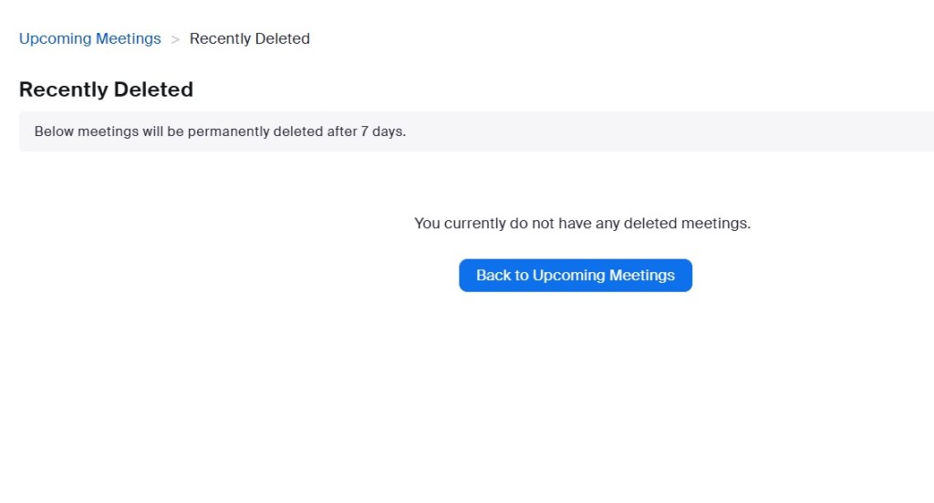 2. Seven minutes later, Zoom generated an email at March 10, 9:05 PM indicating that the February 24, 2025 Zoom meeting was deleted. The meeting was also canceled from Zoom’s trash can in an attempt to permanently delete the record, which shows that the act of deleting the Zoom meeting record was intentional and not merely an accident.